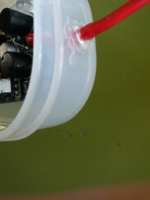 ケースに取り込む部分の電線をコーティングしておきます。