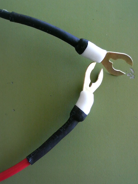 通称、クワ型端子、と呼ばれている端子に被せます。