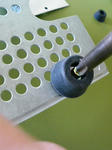 電源シャーシを改造して作成したケースですから、放熱穴を上手く避けてゴム足を装着しています。