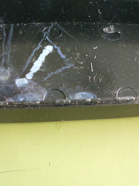 アダプタのケースは、接着剤で留っています。接着面隙間から少しずつ、カッターで切っていきます。