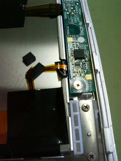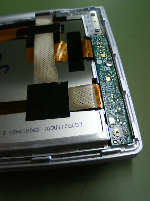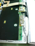 液晶画面パネル裏側の配線の状態を確かめています。