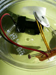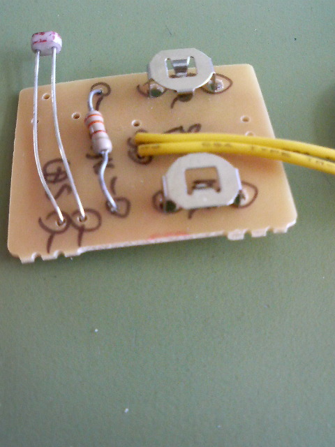 前回の写真では、電池金具が基板表についていました。回路接点が無く間違いですので、裏側に付け替えました。