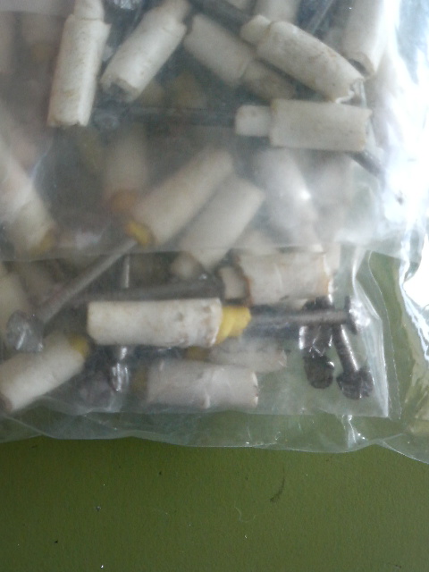 半固定抵抗調整用の手作りツマミ…です。クギの頭を潰して電線被覆を被せ、加工してあります。