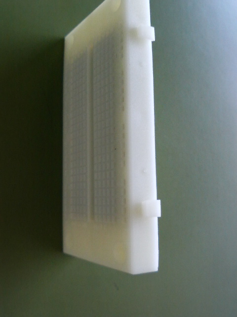このブレッドボードは複数の板を連結することができるように横に切り欠き溝があります。